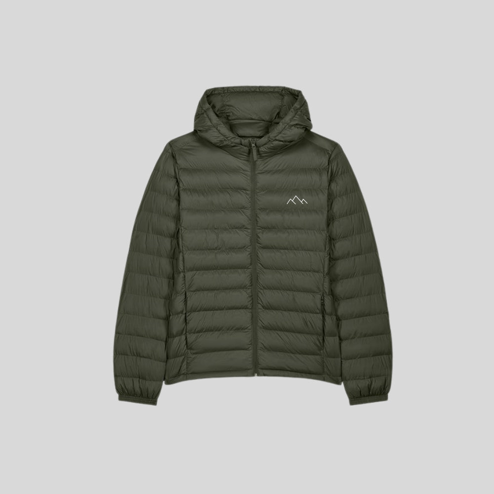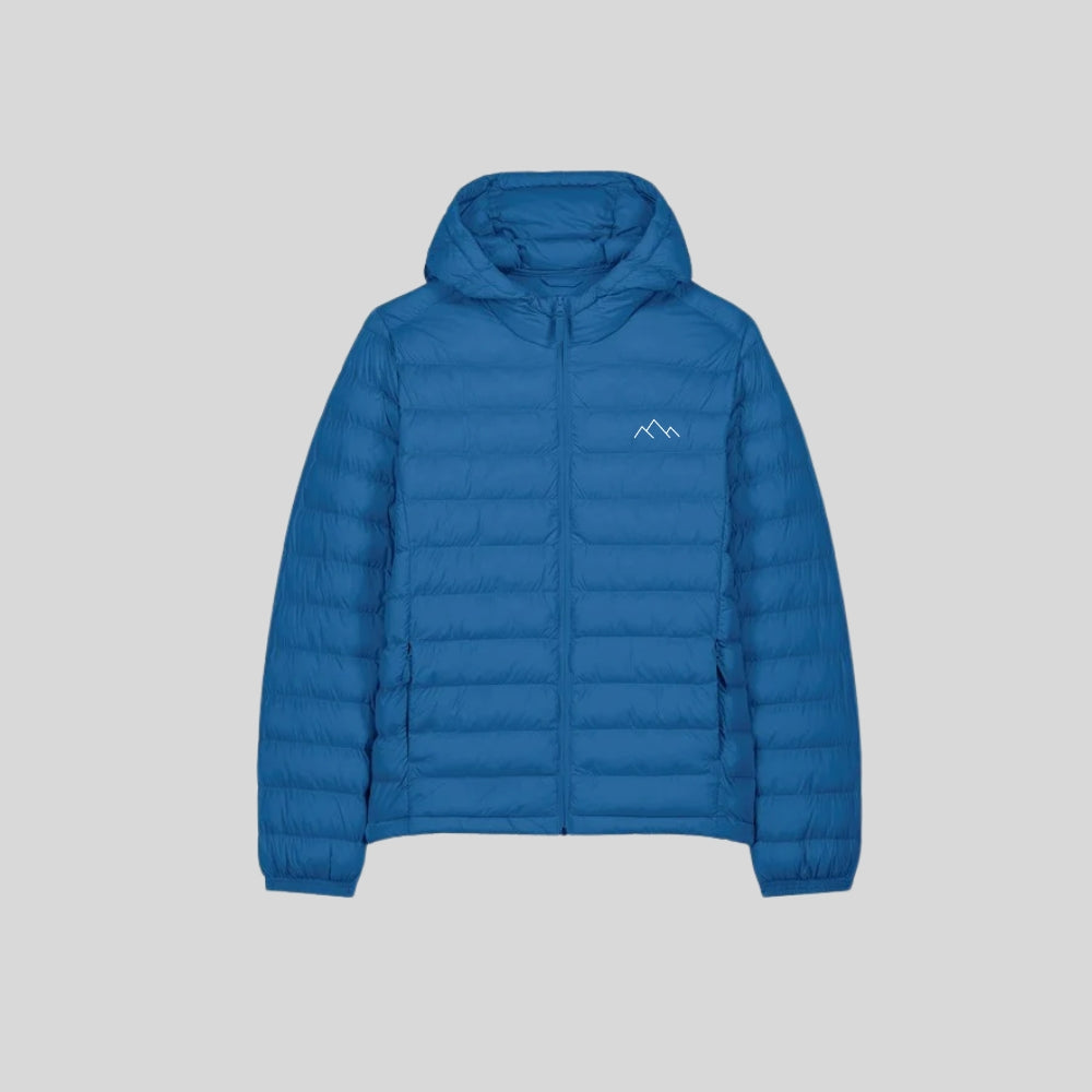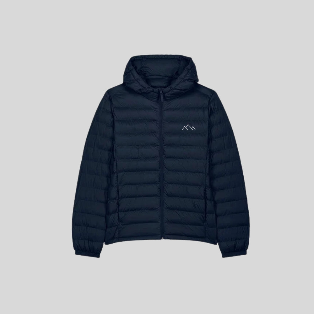 Our Flogo Padded Jacket with removable hood is a coat for all seasons. With high collar and detachable hood, including metal matte hidden snaps the hood opening and bottom hem with adjustable plastic stopper and elastic cord. Zipped welt pockets with extra grosgrain pull. Fully quilted. 1x1 rib at sleeve hem. Oeko-Tex certified. Vegan certified. Fairwear Foundation certified.